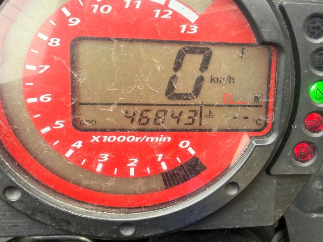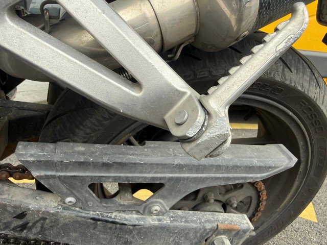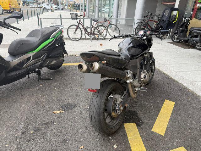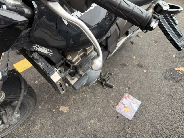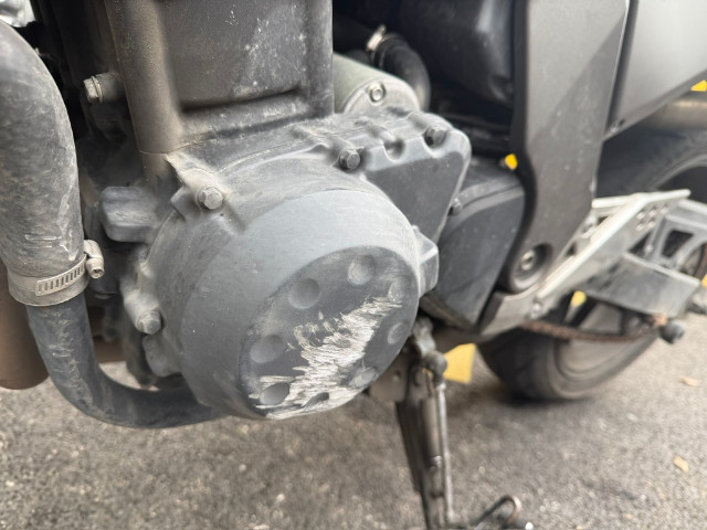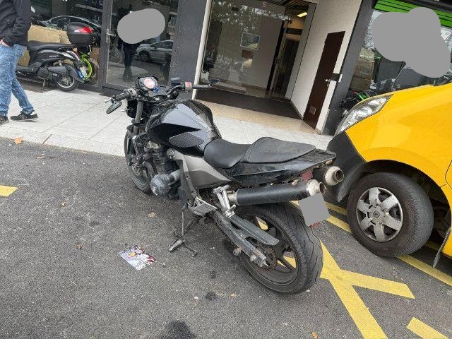Lenker, linker Hebel, linker Rückspiegel, linke Verkleidung, Tank, hintere Verkleidung, linke Fußraste, Halterung der linken Fußraste vorne und hinten, Tank beschädigt.