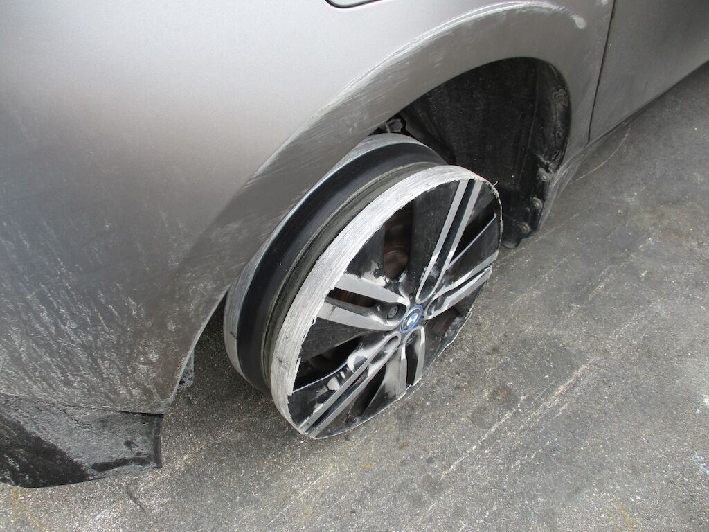 Das Auto weist Schäden an der Front und an den Dachrahmen auf Die Frontscheibe ist zertrümmert Die Stossstange ist eingedrückt. Beide rechten Räder sind zerstört. Die Türe und die Seitenwand HR sind angeschürft. Motor Getriebe Vorderachse Hinterachse Airbags ausgelöst: 0 unbekannt ( Abfallcode 16.01.04ak )