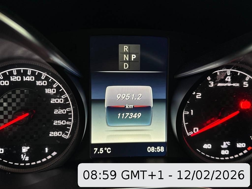 Airbag: Knie-Airbag für Fahrer, Getriebe:9-Stufen-Automat sequentiell, Sitze:Vordersitze elektrisch verstellbar, Beleuchtetes Handschuhfach, Licht:Halogenscheinwerfer, Multifunktionsanzeige, Fahrwerk:AMG Sportfahrwerk, Media:Audio 20 CD Touchpad mit Farbdisplay, RDS-Doppeltuner, 2 USB-Anschlüsse, zentr Bedienelement, Bluetooth-Schnittstelle, Airbag: Seiten- und Beckenairbag (Pelvisbag) für Fahrer und Beifahrer, Info-Display, Regensensor für Scheibenwischer vorne, Katalysator geregelt, Assist:Tempomat mit variabler Geschwindigkeits- begrenzung Limiter, AMG Sport-Abgasanlage mit zwei verchromten Endrohrblenden, Assist: Transparente Motorhaube, Airbag: Automatische Beifahrerairbag-Abschaltung, Dekor:designo Sicherheitsgurte, farbig, Lenkrad:Multifunktions-Sportlenkrad in Leder,unten abgeflacht, Doppelcupholder vorne, Dekor: Dachhimmel schwarz, Polster:Polsterung Ledernachbildung ARTICO / Microfaser DINAMICA, Chrom-Paket, AMG Sportpedalanlage, EASY-PACK-Heckklappe mit elektrischer Betätigung zum Öffnen und Schliessen, Licht: Drittes Bremslicht, Sitze:ISOFIX-Befestigungspunkte für Kindersitz an den äusseren Rücksitzen, Remote Online, Airbag: Window-Kopfairbags, AMG Front- und Heckschürze, Licht: Innenraumlicht-Paket, Media: Digitaler Radioempfang (DAB/DAB+), Klima: Klimatisierungsautomatik THERMATIC mit 2-Klimazonen, Media: Kommunikationsmodul (LTE), Servolenkung geschwindigkeitsabhängig, Heckscheibenheizung, AMG Einstiegleisten, Dekor:Zierelemente in Klavierlack-Optik schwarz / Aluminium, Sitze:Sportsitze vorne, Elektronisches Stabilitäts-Programm (ESP), Getönte Scheiben, Airbag: Airbag Beifahrer deaktivierbar, Licht: Nebelschlussleuchte, Pollenfilter (Staubfilter), Räder:Leichtmetallräder im 5-Doppelspeichen-Design 19J, Fahrwerk:AMG RIDE CONTROL Sportfahrwerk, Kraftstofftank 66 Liter, AMG Veloursfussmatten, Bremsscheiben vorne gelocht, AMG Abrisskante, KEYLESS GO Start Funktion, Assist:Reifendruck-Kontrollanzeige, Allradantrieb permanent, Dekor: Instrumententafel in Ledernachbildung ARTICO, Assist: Notrufsystem, Airbag: Airbag Fahrer und Beifahrer, Kotschutzlappen vorne, AMG Kombiinstrument, DYNAMIC SELECT Schalter, Assist: COLLISION PREVENTION ASSIST PLUS, Interieur mit roten Kontrastziernähten, Paket: AMG Styling-Paket, Licht: LED-Tagfahrlicht, Diamantgrill, Dekor:Applikationen schwarz glänzend, Aussenspiegel schwarz, Antiblockiersystem (ABS)