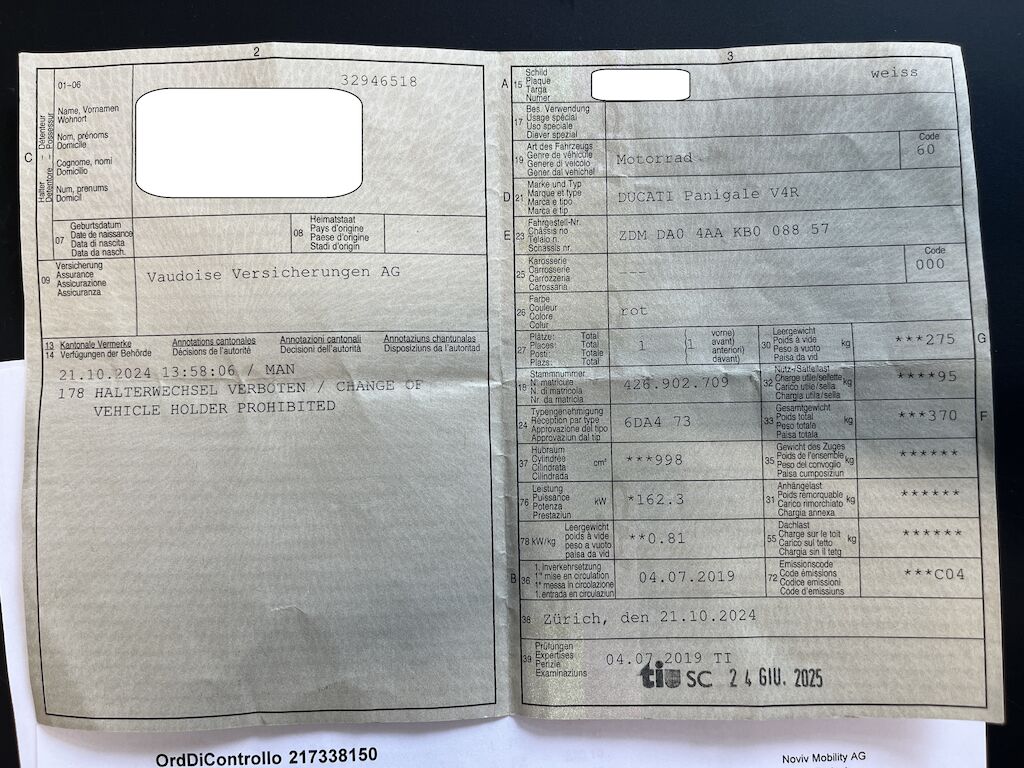moto parcheggiata viene colpita da un veicolo in movimento Motor Getriebe Vorderachse Hinterachse Airbags ausgelöst: 0 unbekannt ( Abfallcode 16.01.04ak )