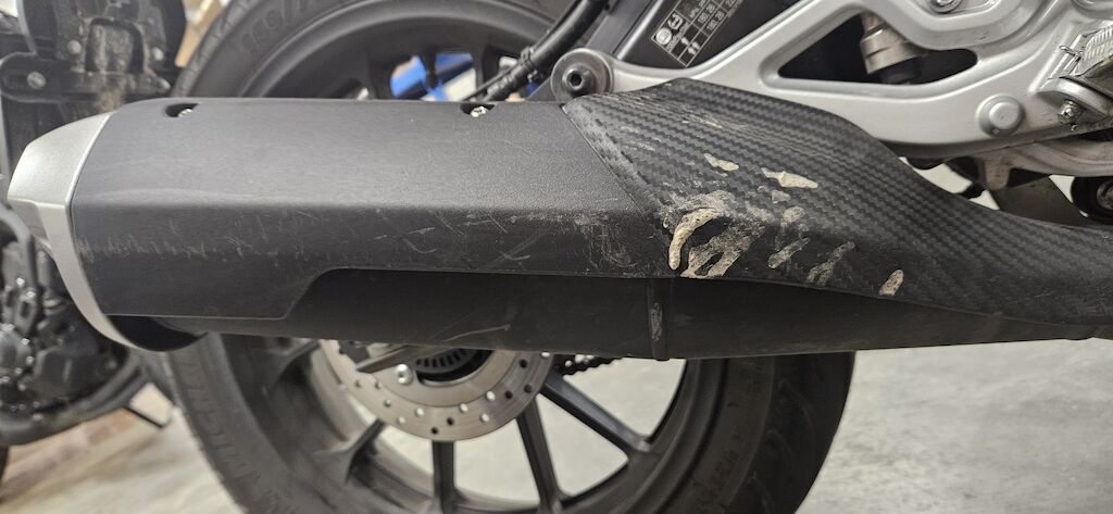 Rückspiegel re. und li., Lenkergewicht re. + li., Bremshebel VR, Kupplungshebel, Lenker, Motorverkleidung VR, Gabelholmen VR, Seitenverkleidung VR + VL, Kopfverschalung, Schutzblech vorne, Schalthebel und Fussraster, Raster HL, Blinker HL, Heck nach links verschoben, Verkleidung am Tank link, Auspuffendtopf, Fussraster VR, ... Motor Getriebe Vorderachse Hinterachse Airbags ausgelöst: 0 unbekannt ( Abfallcode 16.01.04ak )