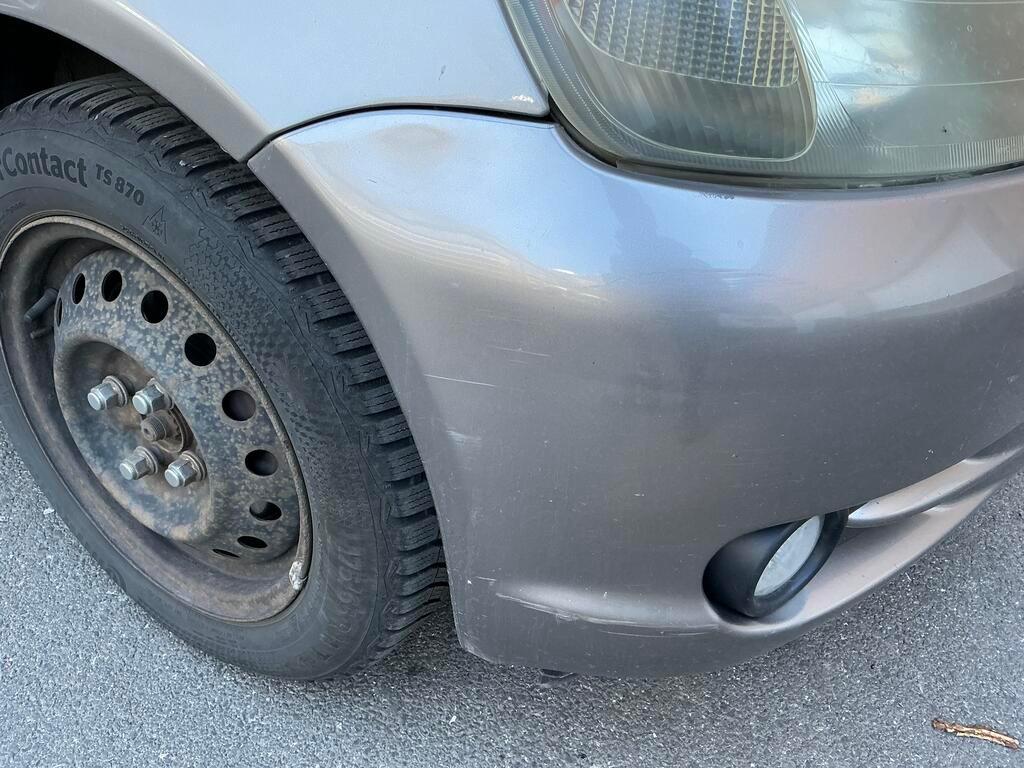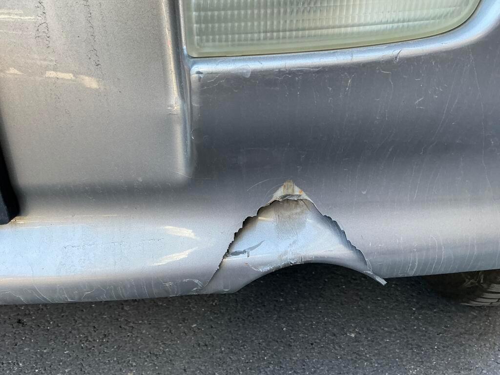 Collision arrière Pare-chocs arrière cassé. Silencieux d'échappement endommagé