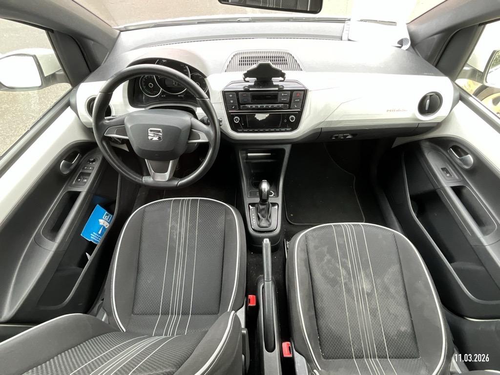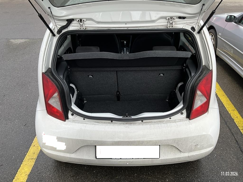 Media: Smartphone-Integration mit Halterung und Navigationssystem (DriveMii-App), Polster: Stoff-Ausstattung, Sitze: Abklappbare Rücksitzbank (60/40), Aussenspiegel rechts und links beheizbar und elektrisch verstellbar, SEAT Garantie: Garantie Batterie-Gewährleistung 8 Jahre oder 160'000 KM auf 70% Batterieleistung (ab 1. Inv.), Sonnenblende Fahrer und Beifahrerseite mit Spiegel, Sitze: Sitzheizung für Vordersitze, getrennt regelbar, Räder: Leichtmetallräder 6J x 16", "Cosmo Grey" 185/50 R16, Licht: Tagfahrlicht, Antiblockiersystem (ABS), Elektronisches Stabilitäts-Programm (ESP), Pollenfilter (Staubfilter), Servolenkung, Lenkrad: Lederlenkrad, SEAT Garantie: Garantie 2 Jahre ohne Kilometerbe-grenzung (ab 1. Inv.), Abgedunkeltes Scheibenglas (ab B-Säule), Getriebe: 1-Gang Getriebe automatik, Media: 5'' Farbdisplay, Schalthebelknauf in Leder, Airbag: Fahrer und Beifahrer Airbag, Warnton und -leuchte für nicht angelegte Sicherheitsgurte, Media: DAB-Radio (Digital Audio Broadcasting), Räder: Reifenreparatur-Set (Tire Fit), Räder: Reifendruckkontrollsystem, Media: Online Dienste, Licht: Nebelschlussleuchte, SEAT Garantie: Garantie 12 Jahre Gewährleistung gegen Karosserie-Durchrostung, Kabel für Wechselstrom-Ladestation, Licht: Halogenscheinwerfer, Assist: Berganfahrhilfe (Hill Holder), Tageskilometerzähler, ISOFIX Kindersitzvorrichtung, Media: Bluetooth Freisprecheinrichtung, 3-Punkt-Sicherheitsgurte auf allen Plätzen, Sitze: Kopfstützen vorne und hinten, Assist: Spurhalteassistent Lane Assist, Frontscheibenheizung, Zentralverriegelung mit Fernbedienung, Heckscheibenheizung, Gleichstrom-Ladedose (Fast Charge), Bordcomputer und Display, Handschuhfach, Media: USB-Anschluss, Dashboard in grau, Sitze: Fahrersitz höhenverstellbar, Heckscheiben-Wisch-/Waschanlage, SEAT Garantie: Garantie 3 Jahre Lack-Gewährleistung, Wärmeschutzverglasung, Airbag: Beifahrerairbag deaktivierbar, Airbag: Seitenairbags und Kopfairbags vorne, Aussenspiegel und Türgriffe in Wagenfarbe, Karosserie teilverzinkt, Media: Lautsprecher 6, Gurtkontrolle, Scheibenbremsen vorne, innenbelüftet, Assist: Licht- und Regensensor, Klima: Climatronic, Licht: Nebelscheinwerfer, Lenkrad: höhenverstellbar, Wegfahrsperre elektronisch, Elektrische Fensterheber vorne
