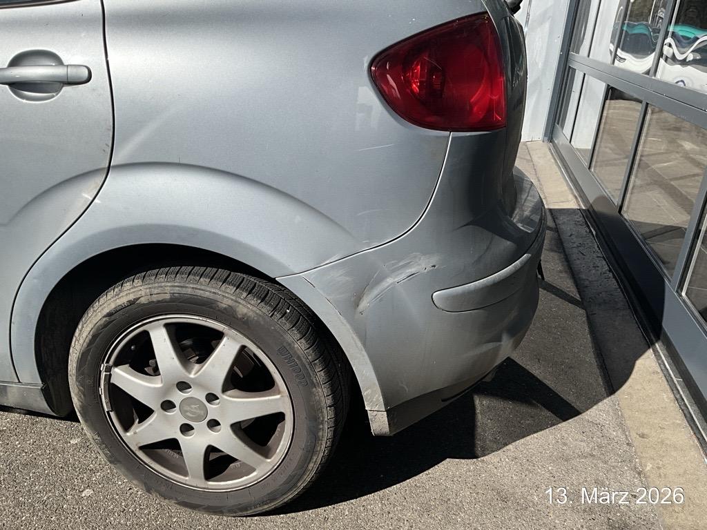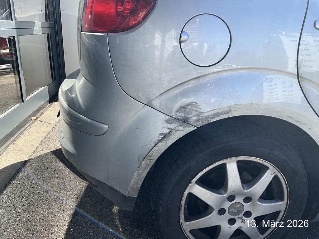 Beschreibung der Schäden: Ecke vorne links eingedrückt Stossfänger, Scheinwerfer, Kotflügel Motorhaube, Frontblech defekt, Kühler ohne Wasser Vorbestandene Schäden: Vorne rechts: Stossfänger und Seitenwand hinten rechts und links eingedrückt beschädigt: Stossstange vorne, rechts unten angekratzt