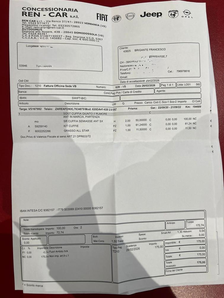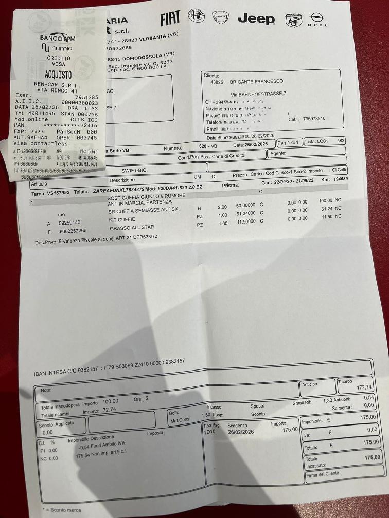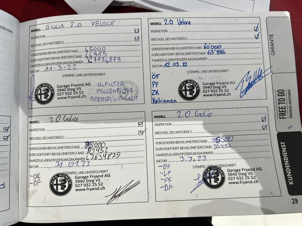 Dem Alter entsprechend ein schönes Auto. Nach Ablauf vom Gratisservice, wurden Reparaturen und Service in Italien gemacht. Rechnungen liegen bei. Keinen Eintauschtest gemacht. Alters-, nutzungs- und laufzeitbedingte Mängel am Fahrzeug sind nicht ausgeschlossen und nicht verhandelbar. Für festgestellte und nicht festgestellte Mängel wird keine Haftung übernommen. Gilt nicht für Schäden welche nach dem Zuschlag entstehen. In diesem Fall wird der Käufer informiert. Eine Minderung des Kaufpreises oder eine Rückgabe (Wandelung) ist ausgeschlossen. Das Fahrzeug muss spätestens 5 Tage nach dem Kauf abgeholt werden (gemäss angegebenem Verfügbarkeitsdatum), ansonsten wird eine Standgebühr pro Tag verrechnet.