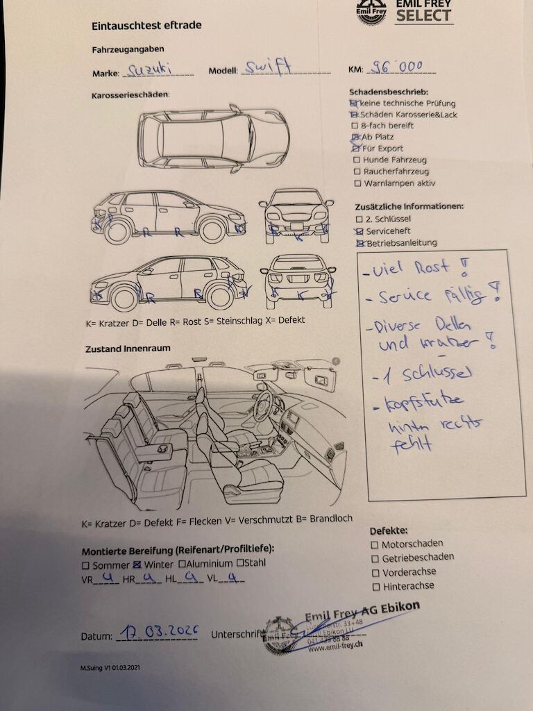 Fahrzeug mit viel Rost unten!!1 Schlüssel vorhanden!Diverse Dellen + Kratzer!Kopfstütze hinten rechts fehlt!Service fällig!