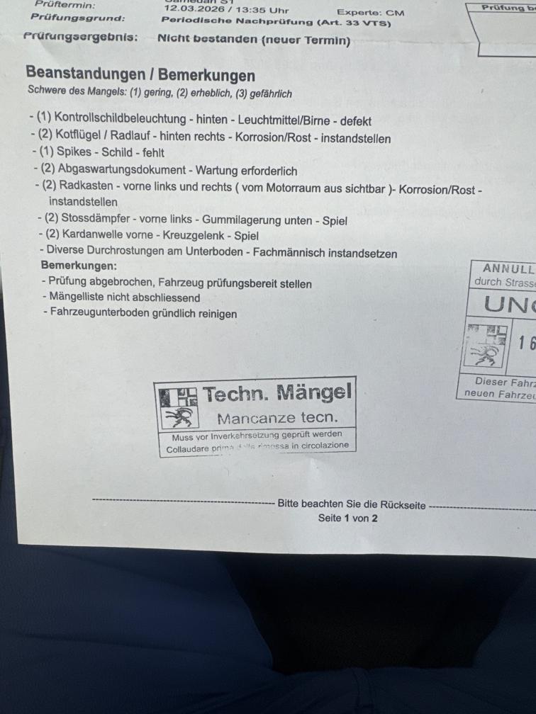 MFK Mängel siehe Prüfbericht Für sichtbare sowie nicht sichtbare Mängel wird keinerlei Haftung übernommen! Jegliche Ansprüche auf Wandelung oder Minderung sind ausdrücklich ausgeschlossen!