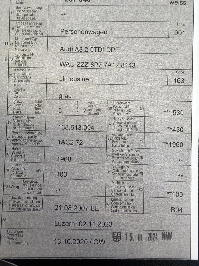 Ein seltener Audi A3 2.0 TDI Automat - Diverse Mängel an Karosserie ! (siehe Fotos) - Das Fahrzeug ist Fahrbereit. Das Fahrzeug wurde keiner technischen Werkstattprüfung unterzogen, und es wurden nicht sämtliche Funktionen geprüft. Der Verkauf erfolgt im aktuellen Zustand. Das Fahrzeug kann vor Gebotsabgabe bei uns besichtigt werden. Nach Zuschlag gilt der Kauf als verbindlich. Nachverhandlungen oder spätere Beanstandungen, auch bei nicht deklarierten Mängeln, sind ausgeschlossen. Der Verkauf erfolgt ab Platz, ohne Garantie oder Gewährleistung. Wandelung und Minderung sind ausgeschlossen.