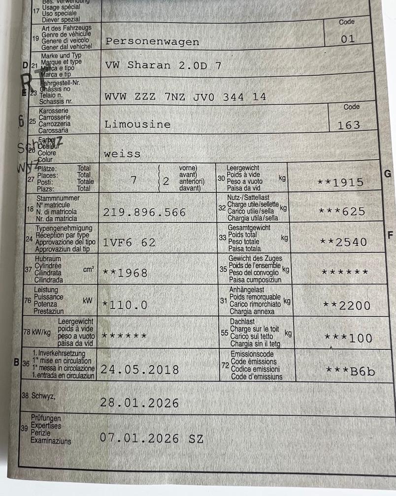 - ab MFK 07.01.2026 - 7 Plätzer - Automatik DSG - Navigation / Rückfahrkamera - 8 fachbereift - keine Delle Schiebetüre links siehe Fotos / sonst sehr gepflegter Zustand - Letzte Service gemacht bei 101908 km - 2 Schlüssel vorhanden Am Fahrzeug wurde kein Werkstatttest gemacht (Für sichtbare oder nicht sichtbare Mängel wird nicht gehaftet). Wir testen & kontrollieren nicht alle Funktionen vom Fahrzeug. Das Risiko liegt somit vollumfänglich beim Käufer. Nachdem der Höchstbietende den Zuschlag erhalten hat, gibt es keine Nachverhandlung, auch wenn nicht deklarierte Mängel zum Vorschein kommen sollten. Ab Platz ohne Garantie, die Gewährleistung ist vollständig ausgeschlossen, damit insbesondere auch Wandelung und Minderung. Nach Zuschlag muss das Fahrzeug innerhalb von 5 Tage abgeholt werden, sonst sind Standgebühren fällig.