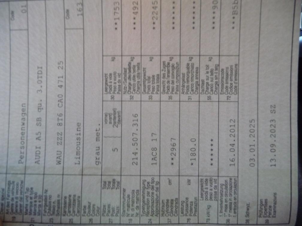 Sehr gepflegter Audi A5 Quattro 3.0 TDI Partikelfiltertest i.O siehe Dokument Der Motor ruckelt, hat Kompressionsverlust über mindestens einen Flammring / Dichtung Einspritzdüse an der linken Zylinderbank / dadurch auch leichter Oelverlust am Ventildeckel Fahrzeug hat eine Steuerkette (kein Zahnriemen) Es leuchte keine Warnlampe auf. Das Fahrzeug ist eingeschränkt fahrbar /fahrt über weiter Distanz wird nicht empfohlen. HL ist eine Parkdelle vorhanden HR leichte Kratzer können poliert werden Das Fahrzeug wurde nicht komplett durchgeprüft. Keine Nachverhandlungen