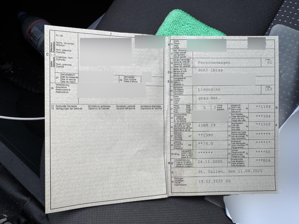 Drehzahlmesser, Gurtkontrolle, Innenlicht-Abschaltverzögerung, Cupholder vorne, Kopfstützen hinten (3), Wegfahrsperre elektronisch, Seitenairbags, Lenkrad längs- und höhenverstellbar, Getönte Scheiben, Digital Uhr, Radiovorbereitung, Dachantenne und, Heckspoiler, Servolenkung, Licht: Tagfahrlicht, Katalysator geregelt, Licht: Nebelscheinwerfer, Lichtwarnsummer, Wassertemperaturanzeige, Airbag: Beifahrerairbag deaktivierbar, Aussenspiegel rechts und links elektrisch verstellbar, Heckscheiben-Wisch-Waschanlage mit Intervall, Mittelkonsole, Heckscheibenheizung, Airbag: Fahrer und Beifahrer Airbag, Licht: Nebelschlussleuchte, Polster: Stoff-Ausstattung, Getriebe: 5-Gang-Getriebe, Tageskilometerzähler, Scheibenwischer vorne mit Intervall, Gurte Höhenverstellbar vorne, Aussenspiegel und Türgriffe in Wagenfarbe, Licht: Bremslicht Drittes, Leuchtweitenregulierung von innen, Zentralverriegelung mit Fernbedienung, Automatikgurt in Fondmitte, Handschuhfach Beleuchtet, Gurtstraffer vorne, Pollenfilter (Staubfilter), Sitze: Rücksitzlehne geteilt abklappbar 1/3 - 2/3, 4 Leichtmetallfelgen 15J mit Pneu, ABS+EDS+TCS, Assist: Tempomat, Elektrische Fensterheber vorne, Elektrisches Glasschiebe- / Hebedach, ISOFIX Kindersitzvorrichtung, Klima: Climatronic, Lenkrad: Multifunktionslenkrad, Media: Lautsprecher 4, Media: Radio/CD-Player mit MP3, Seitenschutz-Zierleisten, Sitze: Fahrersitz höhenverstellbar, Stossstangen in Wagenfarbe