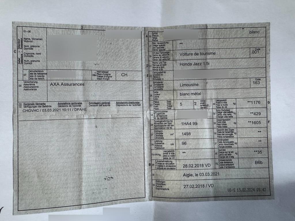Digital Uhr, Licht: LED Scheinwerfer, Nebelscheinwerfer, Lichtausschaltautomatik, Park Distance Control vorne und hinten, Tageskilometerzähler, Räder: Reifendruck-Kontrollanzeige, Lenkrad längs- und höhenverstellbar, Kofferraumbeleuchtung, 4 Leichtmetallfelgen 16J mit Pneu, Leuchtweitenregulierung von innen, 6-Gang-Getriebe, Airbag: Beifahrer deaktivierbar, Zentralverriegelung mit Fernbedienung, Elektrische Fensterheber vorne + hinten, Klima: Klimaanlage, Pollenfilter (Staubfilter), Multifunktionsanzeige, Scheibenwischer vorne mit Intervall, Media: Bluetooth Freisprecheinrichtung, Aussenspiegel rechts und links beheizt, elektrisch verstell- / und einklappbar, iPod + USB Anschluss, 6 Lautsprecher, Assist: Berganfahrhilfe, Elektronisches Stabilitäts-Programm (VSA), Fahrersitz höhenverstellbar, Tempomat, Verkehrsschild-Erkennungssystem, Aktive Kopfstützen, Wassertemperaturanzeige, Audiofernbedienung am Lenkrad, ISOFIX Kindersitzvorrichtung, 3-Punkt-Sicherheitsgurte auf allen Plätzen, Kartentaschen an den Rückenlehnen, Licht: Nebelschlussleuchte, Fahrwerk: Servolenkung, Stoff-Ausstattung, Laderaumabdeckung, Licht: Leseleuchten, Wegfahrsperre elektronisch, Licht: LED-Tagfahrlicht, Licht: Coming-home-Funktion, Dachantenne, Honda Connect mit Navigationssystem Garmin und CD-Player, Katalysator geregelt, Airbag: Airbag Fahrer und Beifahrer, Make up-Spiegel rechts, Licht: Drittes Bremslicht, Steckdose 12V, Start/Stop-Funktion, Türgriffe aussen in Wagenfarbe, Warnblinkautomatik bei Vollbremsung, Window-Kopfairbags, Spurwechselwarnung, automatisches Fernlicht, Assist: Bremsassistent (BAS), Sitze: Vordersitze heizbar, Make up-Spiegel links, Touchscreen, Lackierung: Uni-Lackierung, Zweiter USB-Anschluss, Media: Digitaler Radioempfang (DAB/DAB+), Rücksitzlehne abklappbar, Innenraumbeleuchtung, Räder: Reifenreparatur-Set (Tire Fit), Seitenairbag für Fahrer und Beifahrer, ABS, EBD elektronische Bremskraftverteilung, Heckscheiben-Wisch-/Waschanlage mit, Geschwindigkeitsbegrenzer, Kollisionswarnung, Regensensor für Scheibenwischer vorne, Heckscheibenheizung, Lenkrad und Schalthebelgriff in Leder, Active City Brake