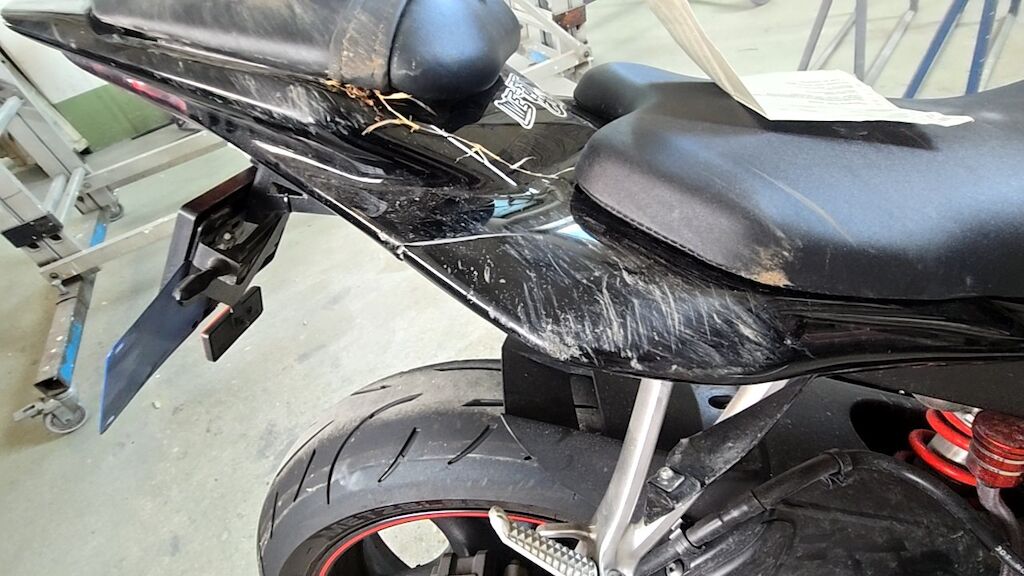 Rechte Seite zerkratzt, Diverse Verschalungen, Bremshebel, Blinker, Lenkergriff rechts, Gashebel, Lenker mit Lager, Fussrasten, Auspuff, Sitze, Scheinwerfer, Getriebedeckel, Tank Scheinwerfer, Rahmen, usw. zerkratzt und gerissen. Motor startet nicht. Motor Getriebe Vorderachse Hinterachse Airbags ausgelöst: 0 unbekannt ( Abfallcode 16.01.04ak )