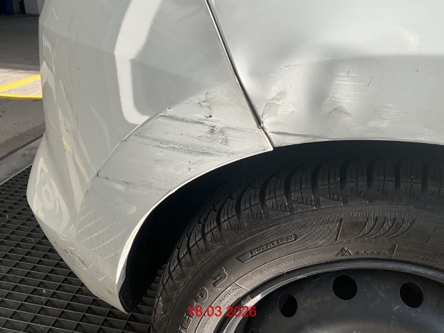 Schaden hinten rechts : Türe, Seitenwand Kniestück eingedrückt und zerkratzt, Stossfänger zerkratzt / Vorbestandene Schäden: Gebrauchsspuren