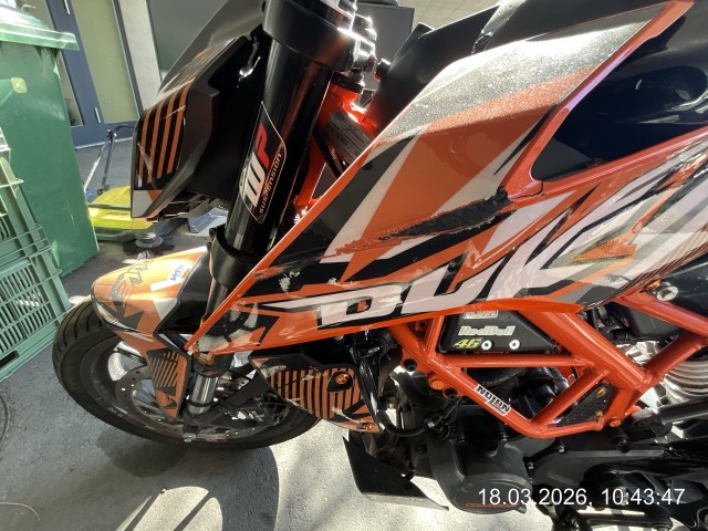 Totalschaden: Rahmen, Lenker komplett, Kombiinstrument und diverse Verkleidung beschädigt/gerissen/gebrochen/zerkratzt. / Vorbestandene Schäden: Gebrauchsspuren