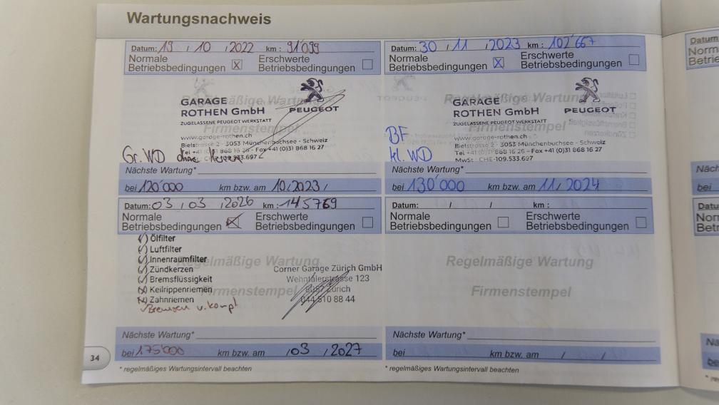 Fahrzeug ist fahrbar hat aber Leistungsverlust bei Beschleunigung wir haben nicht weiter Geprüft . Service ist vor kurzem gemacht ( siehe Bild ) Motor und Getriebe sind trocken 2 Fahrzeugschlüssel und Servicemappe vorhanden Fahrzeug nicht auf weiteres kontrolliert Bremsen hinten noch ca. 30 % - Vorne komplett Neu Alle Plastik im Kofferaum Zerkratzt Armaturenbrett rechts oben kleine weisse flecken Sommerpneu 5.9mm Profil DOT (0325) Winterpneu 6 mm Profil DOT (2924 ) Diverse klein Schäden und Kratzer am Karosserie Alles auf Fotos sichtbar Keine Garantie Jede Gewährleistung wird wegbedungen, insbesondere sind Wandelung und Minderung ausgeschlossen Bieten Sie nur wenn Sie damit einverstanden sind. Keine Nachverhandlung mehr vor Ort möglich. Abholung 8105 Regensdorf innerhalb von 3 Tage