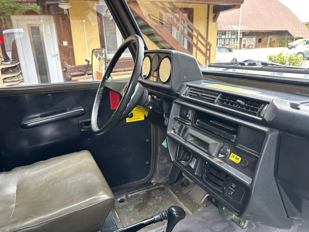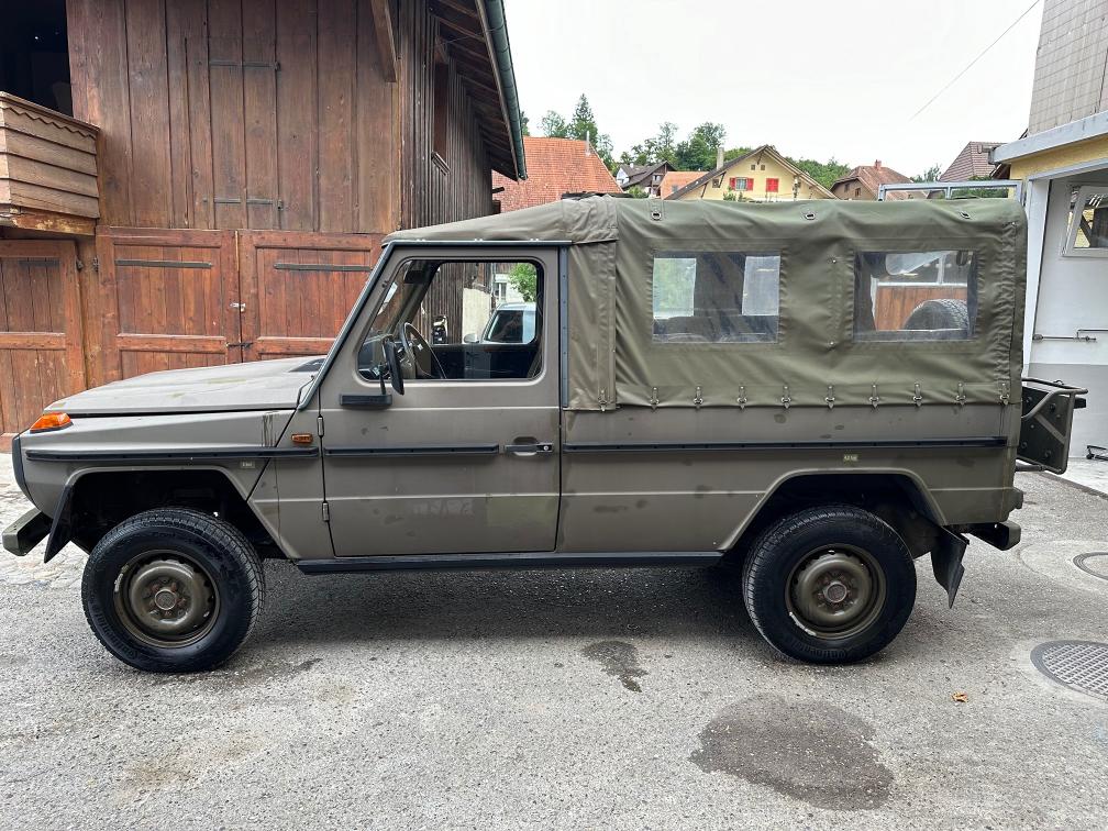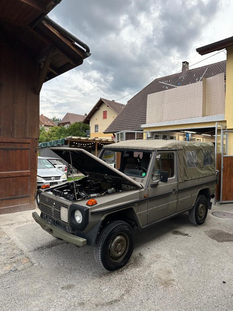 Zum Verkauf steht ein Puch 230 GE. Vor rund einem Jahr wurde eine technische Kontrolle durchgeführt. Dabei wurde festgestellt, dass die Starterbatterien nicht mehr in gutem Zustand sind. Zudem wird die vordere rechte Bremszange nach ca. 10–15 Kilometern heiss. Das Fahrzeug ist jedoch fahrbar und funktioniert grundsätzlich ohne Probleme. Die Kilometeranzeige zeigt aktuell ca. 2’000 km an. Es wird jedoch vermutet, dass der Zähler bereits einmal überdreht hat und die effektive Laufleistung bei etwa 102’000 km liegen könnte. Eine Garantie für die tatsächliche Kilometerleistung kann nicht übernommen werden. Es ist kein grosser Rost bekannt. Weitere Mängel sind nicht bekannt. Aktuell wurde keine neue technische Kontrolle durchgeführt. Das Fahrzeug wird ab Platz und ohne Garantie verkauft. Eine Besichtigung vor Ort ist gerne möglich. Das Fahrzeug muss innerhalb von 10 Arbeitstagen abgeholt werden. Danach fallen Standgebühren von CHF 50.– pro Tag an.