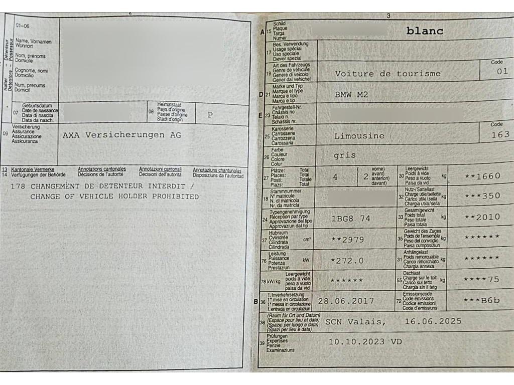 Airbag: Airbag Fahrer und Beifahrer, Reifenkontrollanzeige, M Leichtmetallfelgen im Doppelspeichen styling 437 M 19J, mit Pneu, Leder-Ausstattung 'Dakota' inkl. Sitzheizung, Steckdose 12V, Vordersitze heizbar, Innenspiegel automatisch abblendbar, Komforttelefonie mit erweiterter Smartphone-Anbindung, Speed Limit Info, Window-Kopfairbags, Zentralverriegelung mit Fernbedienung, Cupholder vorne, Katalysator geregelt, Elektrische Lenkung (EPS), Regensensor für Scheibenwischer vorne, Einstiegsschienen mit Logo, Gangempfehlung, Zusätzliche 12V Steckdosen, ConnectedDrive Services, Elektrische Fensterheber vorne, M-Lederlenkrad, Aussenspiegel rechts und links beheizbar und elektrisch verstellbar, Make up-Spiegel links, ISOFIX Kindersitzvorrichtung, AUX-Anschluss, Real Time Traffic Information, Bordcomputer, Antiblockiersystem (ABS), Start-/Stop-Knopf, M Heckspoiler, Scheinwerfer-Waschanlage, Lackierung: Uni-Lackierung, DAB+ (Digital Audio Broadcasting), BMW Mobility System, Shadow Line glänzend, Assist: Dynamische Traktionskontrolle (DTC), BMW Individual Dachhimmel Anthrazit, Xenon-Lichtanlage, Wärmeschutzverglasung, Radio BMW Professional, Instrumentenkombination mit erweiterten Umfängen, Adaptives Kurvenlicht, Gurtkontrolle, Airbag: Seitenairbag für Fahrer und Beifahrer, Navigationssystem Professional, Make up-Spiegel rechts, Lenkrad: Lenkrad längs- und höhenverstellbar, Airbag: Airbag Beifahrer deaktivierbar, Intelligenter Notruf, Armauflage vorne, verschiebbar, Veloursfussmatten vorne und hinten, Sitze: Sportsitze vorne, TeleService, Blinker in Aussenspiegel, Ausführung 4 Sitzplätze (2+2), Lenkrad: Multifunktionslenkrad, Abschliessbare Radschrauben, Interieurleisten Carbon, Licht: Fernlicht-Assistent, Dynamische Stabilitätskontrolle (DSC), Bremsassistent (BAS), Auto Start-/Stop-Anlage, Bremsenergie-Rückgewinnung, Kopfstützen hinten, Klimatisierungsautomatik, Sequenzielles 7-Gang-Getriebe mit Automatikfunktion