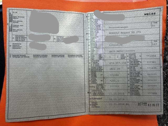 Fahrzeugdokumente vorhanden.