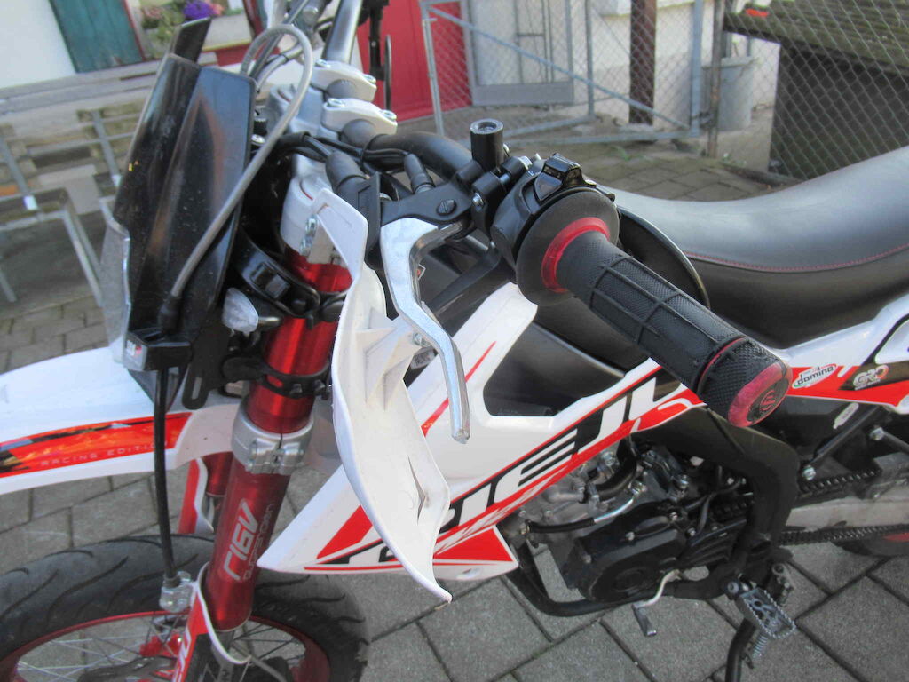 CH-Fahrzeug mit angegebenen 13000km ( Tacho fehlt )RIEJU Maraton 125 pro Trophy aus dem Jahr 2024.Gabel vorne verzogen und Sturz auf die linke Seite. Schlüssel im Zündschloss abgebrochen, Tacho abgebrochen. Motor kann aufgrund Zündschloss nicht gestartet werden.