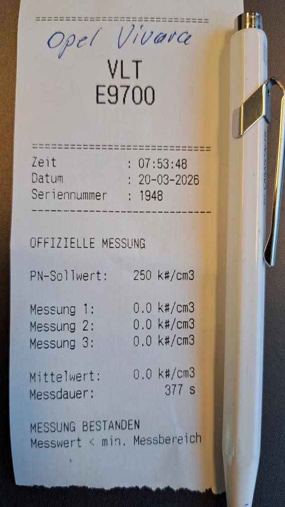 Dieselpartikelfiltertest wurde erfolgreich durchgeführt (Schriftlicher Ausdruck ist vorhanden).