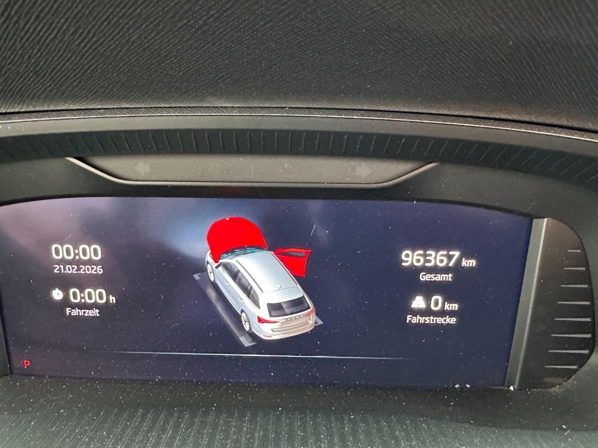 Kindersitzverankerung für Kindersitzsystem I-Size, 2 x TopTether und Kindersitzverankerung vorne, - (Beifahrerseite), Gurtkontrolle, Dachreling schwarz, Assist: Emergency Call (Notruf), Wassertemperaturanzeige, Schliess- und Startsystem KESSY, Licht: LED Nebelscheinwerfer, SKODA Garantie: Garantie 2 Jahre ohne Kilometerbegrenzung (ab 1. Inv.), Lenkrad: 2-Speichen-Leder-Multifunktionslenkrad mit Schaltwippen, Elektronisches Stabilitäts-Programm (ESP), Assist: Front Assist - Warnen und Bremsen bei Fahrzeugen, Fussgängern und Radfahrern inkl. Abbiegeassistent, Lackierung: Uni-Lackierung, Airbag: Zentralairbag vorne (zwischen Fahrer- und Beifahrersitz), Media: Navigationssystem COLUMBUS - 10"-Farb-Touchscreen - DAB+ Empfänger - Webradio, - Sprachbedienung - Kartenmaterial Europa - Infotainment Online 3 Jahre, Assist: Berganfahrassistent, Zentralverriegelung, Virtuelles Cockpit, Assist: Parksensoren vorne und hinten, Getriebe: 7-Gang DSG, Elektrische Fensterheber vorne + hinten, Tageskilometerzähler, Licht: LED Heckleuchten, Sitze: Rücksitzbank ungeteilt, Rücksitzlehne geteilt umklappbar mit Mittelarmlehne mit Getränkehalter, Airbag: Knie-Airbag für Fahrer, Heckscheibenheizung, Media: SmartLink Premium, Sitze: 3 Kopfstützen hinten, Sitze: Mittelarmlehne vorne, SKODA Garantie: Garantie 12 Jahre gegen Durchrostungs (ab 1. Inv.), Sitze: Lendenwirbelstütze in Vordersitzlehnen, manuell einstellbar, 3-Punkt-Sicherheitsgurte hinten mit ECE-Kennzeichnung und Gurtstraffer, Licht: Basis LED Hauptscheinwerfer, Assist: Geschwindigkeitsregelanlage (Tempomat), Media: 8 Lautsprecher, Licht: LED-Tagfahrlicht, Media: Infotainment Online 3 Jahre, Scheibenwaschdüsen beheizt, Polster: Stoff-Ausstattung, Teppichfussmatten vorne und hinten, Servolenkung, Airbag: Airbag Beifahrer deaktivierbar, ABS, EBD elektronische Bremskraftverteilung, Media: Telefonvorbereitung mit Bluetooth, SKODA Garantie: Garantie 3 Jahre gegen Lackschäden (ab 1. Inv.), Elektrisch einstellbare, beheizbare, klappbare, automatisch abblendbare Aussenspiegel (Fahrerseite) - mit Boarding-Spots - Regensensor mit automatischer Rückspiegelabblendung - Lichtassistent (Coming Home, Leaving Home, Tunnel Light), Pollenfilter (Staubfilter), Partikelfilter und Oxydationskatalysator, Klima: Climatronic 2-Zonen-Temperaturregelung, vollautomatisch, getrennt regelbar, Assist: Spurhalteassistent "Lane Assist" inkl. Multifunktionskamera, Nebelschlussleuchte, Scheibenwischer vorne mit Intervall, Räder: Reifendruckkontrollsystem, Drehzahlmesser, Wegfahrsperre elektronisch, Handschuhfach, Heckscheibenwischer AERO, Airbag: Airbag Fahrer und Beifahrer, Airbag: Seitenairbags und Kopfairbags vorne, Drittes Bremslicht LED, Sitze: Vordersitze heizbar, Aussenspiegel rechts und links beheizbar und elektrisch verstellbar, Dekor: Dekoreinlagen "Alu Design", Licht: Lichtassistent (Coming Home, Leaving Home, Tunnel Light), Media: Radio BOLERO mit 10"-Farb-Touchscreen, DAB+ Empfänger und Sprachbedienung, Multifunktionsanzeige, Regensensor für Scheibenwischer vorne, Räder: Leichtmetallräder 7,0 J x 16" TWISTER 205/60 R16