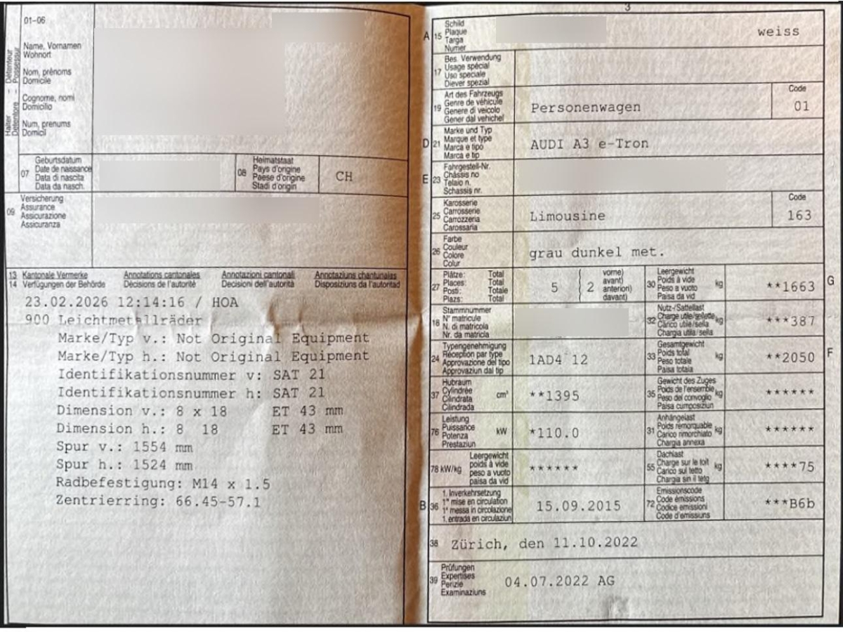 Die (vom Fahrzeugexperten) ermittelten Reparaturkosten beziehen sich auf das versicherte Ereignis. Allfällige zusätzliche, nicht versicherte Schäden/Vorschäden, sind in den Reparaturkosten nicht enthalten. Die deklarierten Ausstattungsmerkmale können von der effektiven Ausstattung abweichen.AchtungBei einem Hochvoltsystem - Spannungsfreiheit prüfen. Sicherheitshinweise und Betriebsanleitungen des Herstellers konsultieren und befolgen.