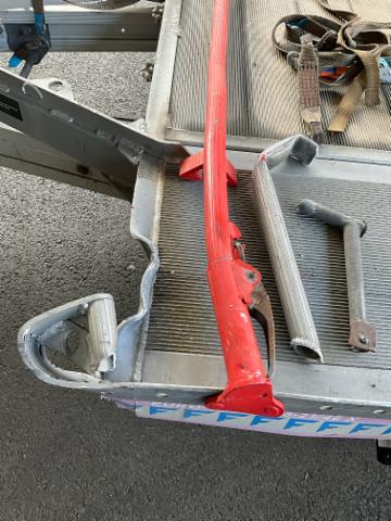 Front eingedrückt. Deichsel deformiert.