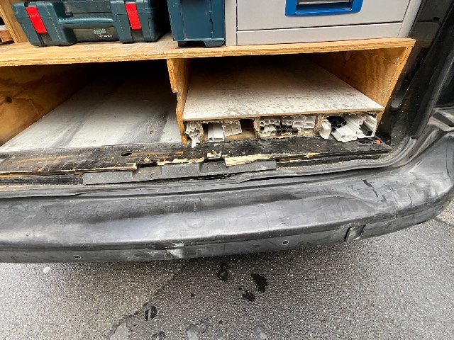 Chocs arrière sur les deux portes, jupe arrière, jupe et plancher / les aménagements seront repris / Dommages préexistants: Hinten rechts - Seite links