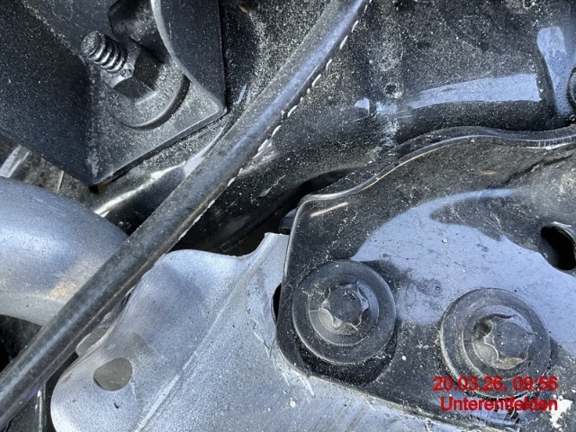 Front: beide Kotflügel, Radhausschale vorne, Stossfänger, Schliessteil Stossfänger, Motorhaube, Motorhauben-Scharniere, Scheinwerfer links, Blende, Lüftungsgitter, Pralldämpfer, Prallträger, Sensor Fußgänger Erkennung, Schlossträger, Parksensor, Längsträger oben, Federbeinaufnahme, Klimaleitung, Radaufhängung vorne links, Lenkung deformiert/gebrochen/gerissen - AUFZÄHLUNG NICHT ABSCHLIESSEND / Vorbestandene Schäden: Gebrauchsspuren