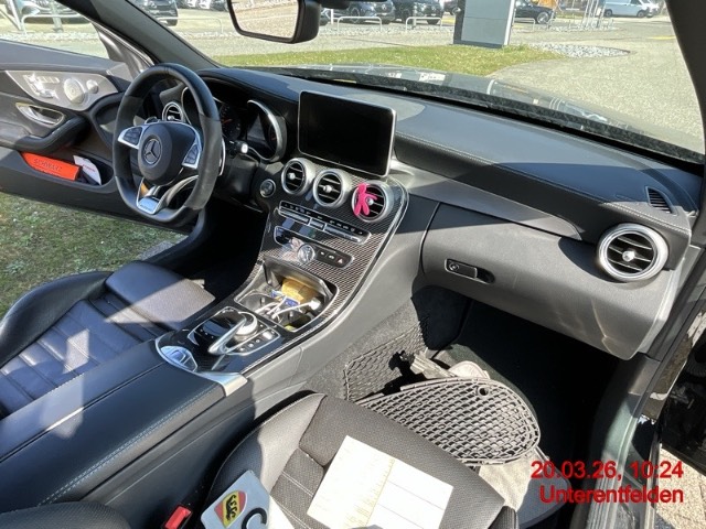 AMG Abrisskante, AMG Front- und Heckschürze, AMG Kombiinstrument, AMG Leichtmetallräder im 5-Speichen- Design 18J, schwarz lackiert und glanzgedreht, AMG Sportpedalanlage, Airbag: Airbag Beifahrer deaktivierbar, Airbag: Airbag Fahrer und Beifahrer, Airbag: Automatische Beifahrerairbag-Abschaltung, Airbag: Knie-Airbag für Fahrer, Airbag: Seiten- und Beckenairbag (Pelvisbag) für Fahrer und Beifahrer, Airbag: Window-Kopfairbags für Fahrer, Beifahrer und Fondraumpassagiere, Allradantrieb permanent, Assist: COLLISION PREVENTION ASSIST PLUS, Assist: Notrufsystem, Assist: Tempomat mit variabler Geschwindigkeitsbegrenzung SPEEDTRONIC, Assist:Reifendruck-Kontrollanzeige, Aussenspiegel in schwarz, Bremsscheiben vorne gelocht, DYNAMIC SELECT Schalter, Dekor: Dachhimmel schwarz, Dekor: Instrumententafel in Ledernachbildung ARTICO, Dekor:Kontrastnähte, Dekor:Zierelemente in Klavierlack-Optik schwarz / Aluminium, Dekor:designo Sicherheitsgurte, farbig, Diamantgrill, Fahrwerk:AMG RIDE CONTROL Sportfahrwerk, Fahrwerk:AMG Sport-Parameterlenkung, Getriebe:9-Stufen-Automat sequentiell, Heckscheibenheizung, Katalysator geregelt, Klima: Klimatisierungsautomatik THERMATIC mit 2-Klimazonen, Kommunikationsmodul, Kraftstofftank 66 Liter, Lackierung: Uni-Lackierung, Lenkrad:Multifunktions-Sportlenkrad in Leder,unten abgeflacht, Licht: Innenraumlicht-Paket, Licht: LED High Performance-Scheinwerfer, Licht: Nebelschlussleuchte, Media:Audio 20 USB Multimediasystem, 17,78cm- Farbdisplay, Doppeltuner, 2 USB, zentra- les Bedienelement, Bluetooth, SD-Karten- anschluss, Paket: AMG Styling-Paket, Polster:Polsterung Ledernachbildung ARTICO / Microfaser DINAMICA, Sitze:Gurtbringer elektrisch vorne, Sport-Abgasanlage mit zwei Endrohrblenden, Sportbremsanlage, Verdeck schwarz, Wegfahrsperre elektronisch