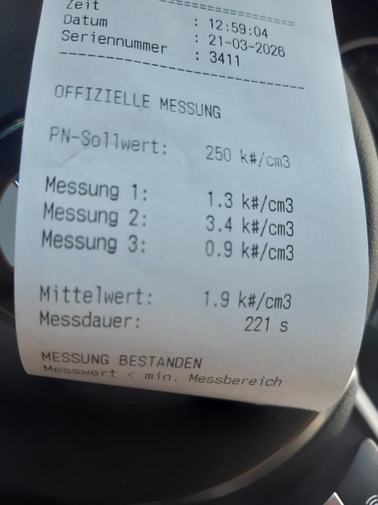 Dieselpartikelfiltertest wurde erfolgreich durchgeführt (Schriftlicher Ausdruck ist vorhanden).