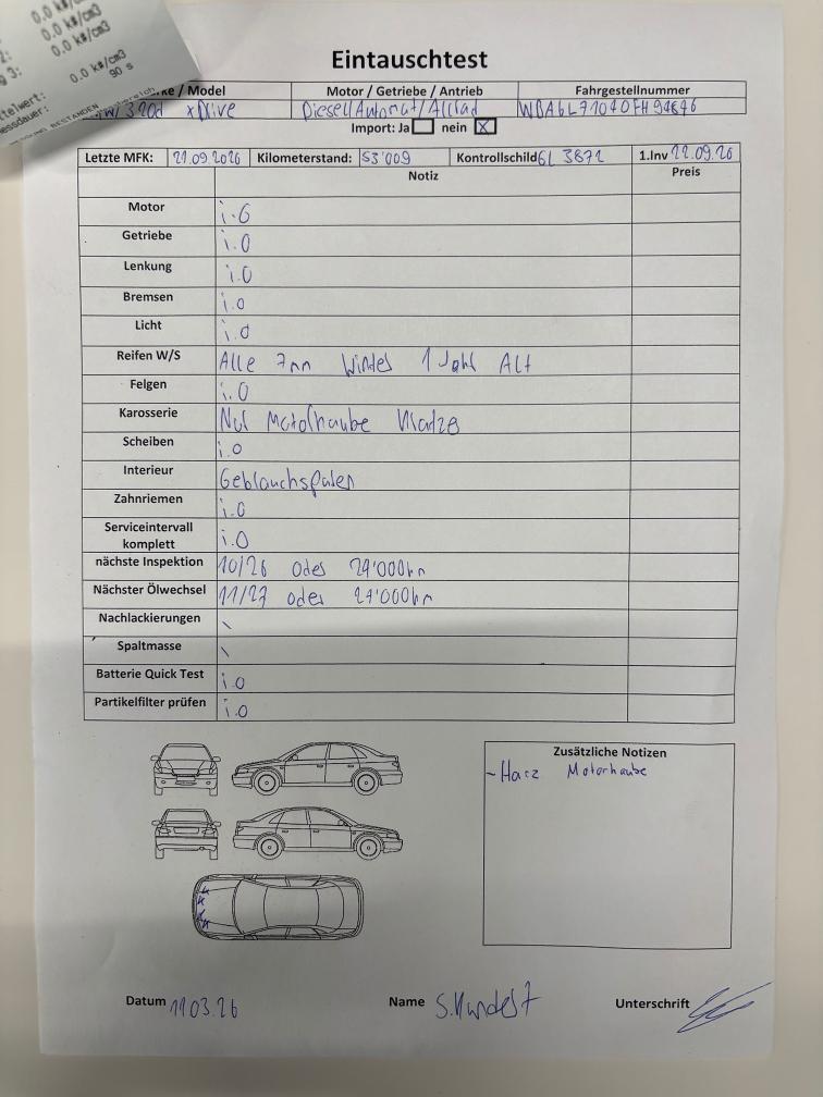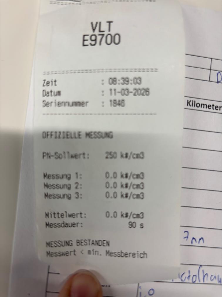 Dieselpartikelfiltertest wurde erfolgreich durchgeführt (Schriftlicher Ausdruck ist vorhanden).
