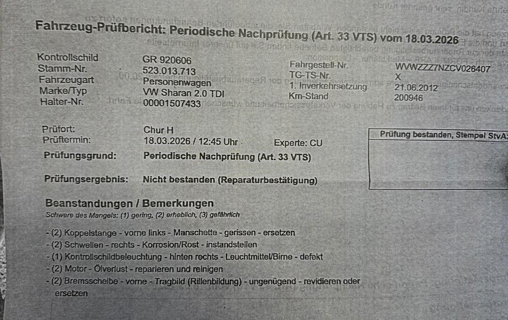 Gepflegter Sharan 2.0 Tdi Highline 4m 7Plätzer Zustand gemäss Foto und MFK Mängel im Anhang. Keine weitere technische Prüfung gemacht. Keine Garantie, Gewährleistung oder Nachwährschaft. Keine Minderung und Wandelung