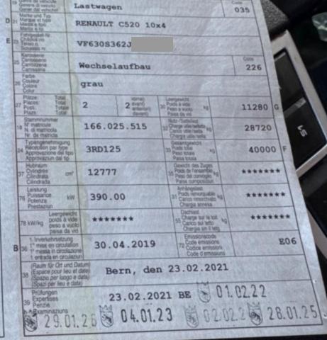Fahrzeug muss transportiert werden (Höhe und Breite beachten). Fahrzeug lag auf der Seite. Motor ist weitergelaufen.