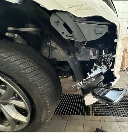 Fahrzeug vorne rechts eingedrückt Komplette Radaufhängung vorne rechts, inkl. Lenkgetriebe beschädigt Längsträger und Radhaus vorne rechts beschädigt. Rad V.R beschädigt Schweller rechts eingedrückt Kopf und Frontairbags ausgelöst Gurtstraffer ausgelöst Scheinwerfer rechts beschädigt Weitere Schäden die nicht aufgelistet sind, können nicht ausgeschlossen werden. Motor Getriebe Vorderachse Hinterachse Airbags ausgelöst: 4 unbekannt ( Abfallcode 16.01.04ak )