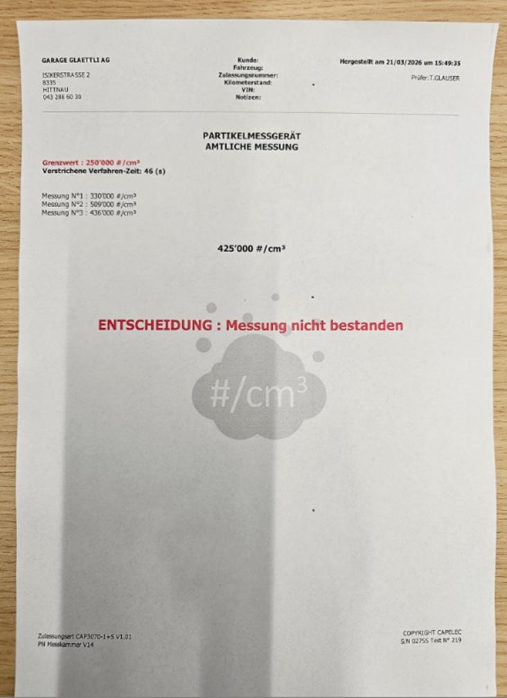 Dieselpartikelfiltertest gemacht und nicht in Ordnung! (ACHTUNG beim Bieten: Der Dieselpartikelfilter muss bei diesem Fahrzeug zwingend ersetzt werden, weil er nicht gut ist!)