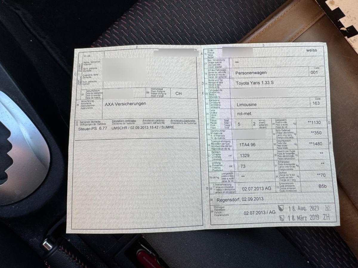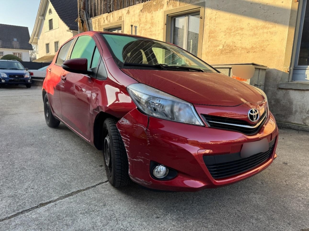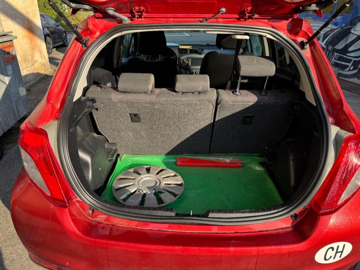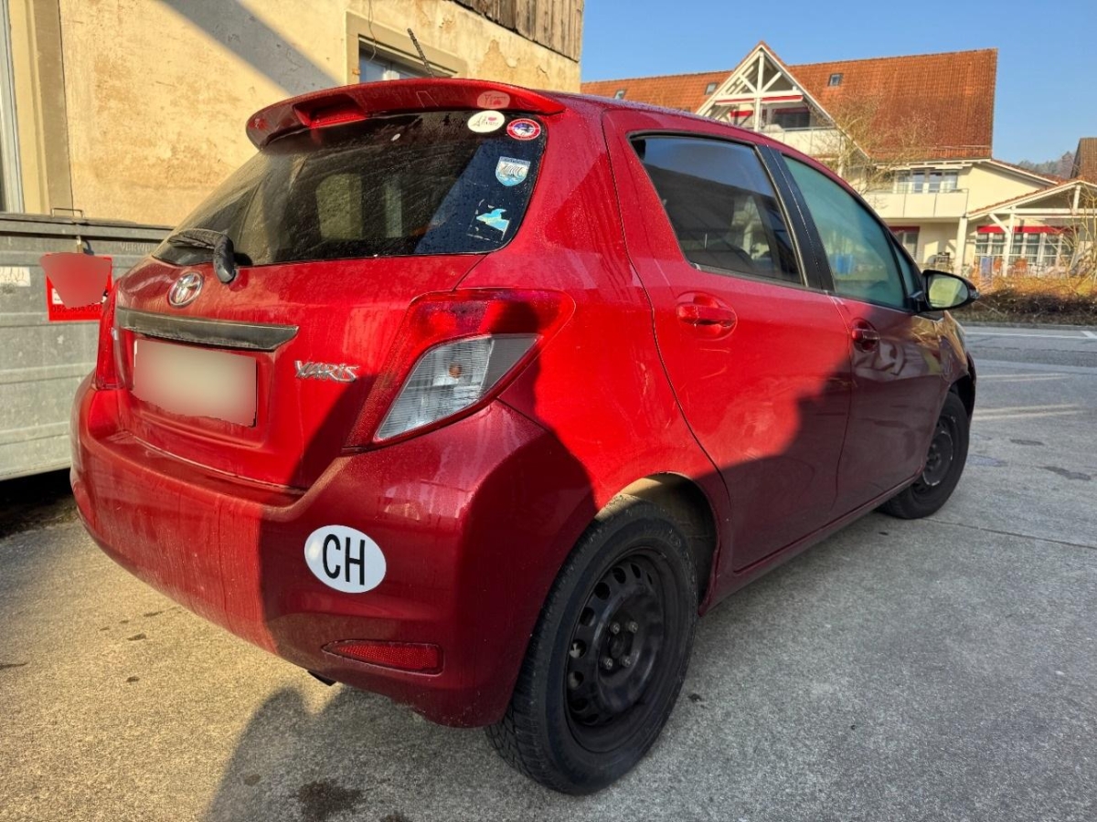 Türgriffe aussen in Wagenfarbe, Lichtwarnsummer, Bremsassistent (BAS), Tankdeckel-Entriegelung von innen, Media: Bluetooth-Schnittstelle, Lackierung: Uni-Lackierung, Airbag: Airbag Fahrer und Beifahrer, ISOFIX Kindersitzvorrichtung, Media: Multimedia Audiosystem Toyota Touch, Make up-Spiegel links, Licht: Abblendlichtausschaltverzögerung 'Follow me home', Licht: Drittes Bremslicht, Kopfstützen hinten, Ablagen in den Türen, Stossstangen und Aussenspiegel in Wagenfarbe, Sitze mit Schleudertrauma-Schutzsystem, Dachspoiler in Wagenfarbe, Innenspiegel automatisch abblendbar, Licht: Nebelscheinwerfer, Räder: 4 Leichtmetallfelgen 16J mit Pneu, Make up-Spiegel rechts, Sitze: Beifahrersitz höhenverstellbar, Klima: Klimaanlage, Digital Uhr, Elektrische Fensterheber vorne, Türgriffe innen verchromt, Wegfahrsperre elektronisch, Farbmonitor, Blinker in Aussenspiegel, Digitaler Radioempfang (DAB) Vorbereitung, Cupholder vorne und hinten, Multifunktionsanzeige, Licht: LED Heckleuchten, Sitze: Rücksitzlehne geteilt abklappbar, Lenkrad: Multifunktionslenkrad mit Radiobedienung, Polster: Stoff-Ausstattung, Haltegriffe 2 vorne und 2 hinten, Airbag: Window-Kopfairbags, Sitze: Fahrersitz höhenverstellbar, Assist: Rückfahrkamera, Aussentemperaturanzeige, Wärmeschutzverglasung, Antiblockiersystem (ABS), Lenkrad: Lenkrad längs- und höhenverstellbar, Airbag: Airbag Beifahrer deaktivierbar, 12-Volt-Steckdose vorne, Kartentaschen an den Rückenlehnen, Airbag: Knie-Airbag für Fahrer, Lederhandbremshebel, Radiovorbereitung, Antenne, Entstörung und 8 LS, Armlehne für Fahrersitz, Drehzahlmesser, Aussenspiegel rechts und links beheizbar und elektrisch verstellbar, Katalysator geregelt, Tageskilometerzähler, Servolenkung, Laderaumabdeckung, Airbag: Seitenairbags, Media: USB+AUX-Anschluss, Getriebe: 7-Stufen-Automat CVT sequentiell, Sportlenkrad und Schalthebelgriff in, Abgedunkelte Seiten- und Heckscheibe, Räder: Reifenreparatur-Set (Tire Fit), Pollenfilter (Staubfilter), Leseleuchten vorne, Heckscheiben-Wisch-/Waschanlage, Heckscheibenheizung, Aussenspiegel und Türgriffe in Wagenfarbe, Stabilitäts- und Traktionskontrolle (VSC und TRC), Zentralverriegelung mit Fernbedienung, Licht: Nebelschlussleuchte, Premium-Audiosystem