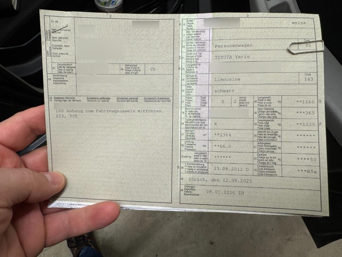 Drehzahlmesser, Aussenspiegel rechts und links beheizbar und elektrisch verstellbar, Window-Kopfairbags für Fahrer, Beifahrer und Fondraumpassagiere, Airbag: Knie-Airbag für Fahrer, Bremsassistent (BAS), Servolenkung, Scheibenwischer vorne mit Intervall, Media: Radiovorbereitung, Antenne, Entstörung und 6 LS, Heckscheiben-Wisch-/Waschanlage, Licht: Nebelscheinwerfer, Lenkrad: Lenkrad höhenverstellbar, Zentralverriegelung mit Fernbedienung, Tageskilometerzähler, Partikelfilter und Oxydationskatalysator, Getönte Scheiben, Airbag: Airbag Fahrer und Beifahrer, Digital Uhr, Heckscheibenheizung, Getriebe: 6-Gang-Getriebe, Stossstangen in Wagenfarbe, MP3 Schnittstelle, Aussenspiegel und Türgriffe in Wagenfarbe, Räder: 4 Leichtmetallfelgen 15J mit Pneu, Lenkrad: Lenkrad, Schaltknauf und Handbremshebel Leder, Elektrische Fensterheber vorne + hinten, Antiblockiersystem (ABS), Media: Bluetooth Freisprecheinrichtung, Airbag: Seitenairbags, Notrad, Smart Entry-/Start-System, Radio/CD-Player, Multifunktionsanzeige, Radiofernbedienung, ISOFIX Kindersitzvorrichtung, Klima: Klimatisierungsautomatik, Licht: Drittes Bremslicht, Licht: Nebelschlussleuchte, Polster: Stoff-Ausstattung, Airbag: Airbag Beifahrer deaktivierbar, Stabilitäts- und Traktionskontrolle (VSC und TRC), Lackierung: Uni-Lackierung, Sitze: Fahrersitz höhenverstellbar