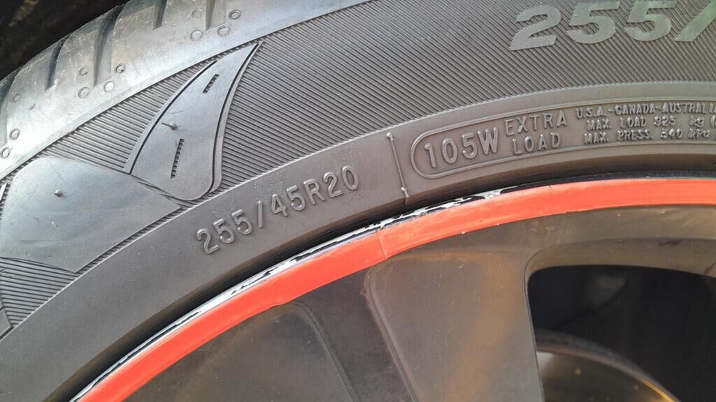 Axe 1: L: 6 mm, R: 6 mm, Dimension: 255/45R20 105WAxe 2: L: 3 mm, R: 3 mm, Dimension: 275/40R20 106Y