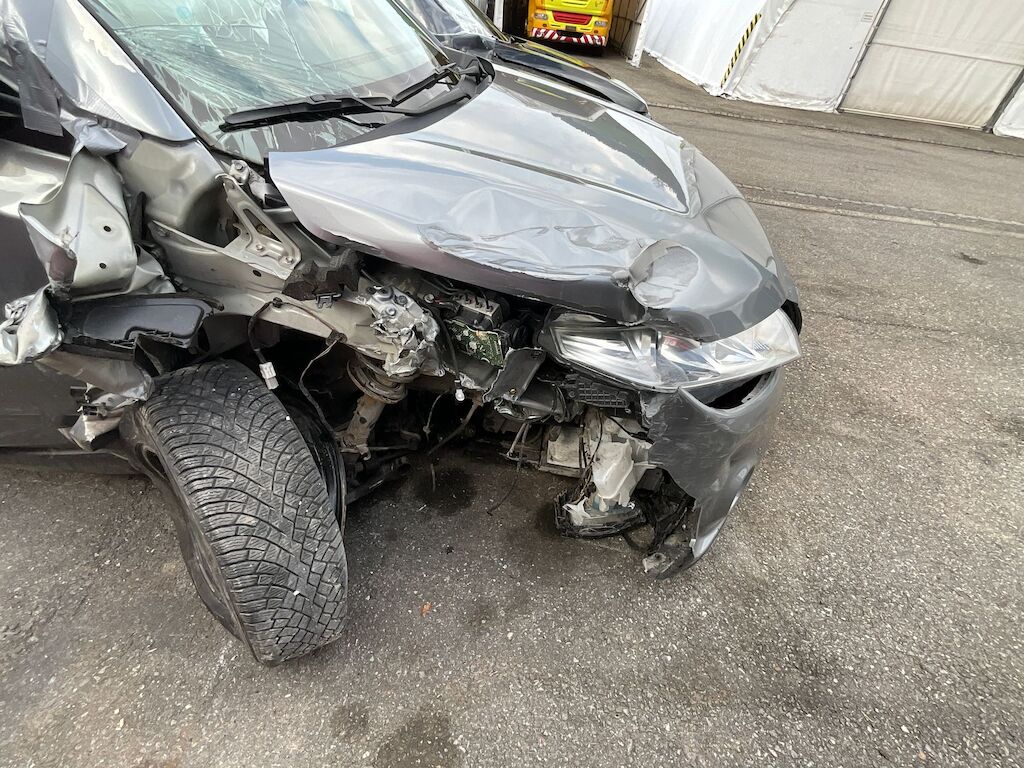 Schaden Seite rechts mit Beschädigung von Stossfänger, Kotflügel, kompletter Radaufhängung, Federbeinaufnahme, Frontscheibe, Türen, Dachrahmen, A-Säule sowie diverse Anbauteile. Motor Getriebe Vorderachse Hinterachse Airbags ausgelöst: 3 unbekannt ( Abfallcode 16.01.04ak )