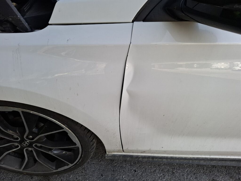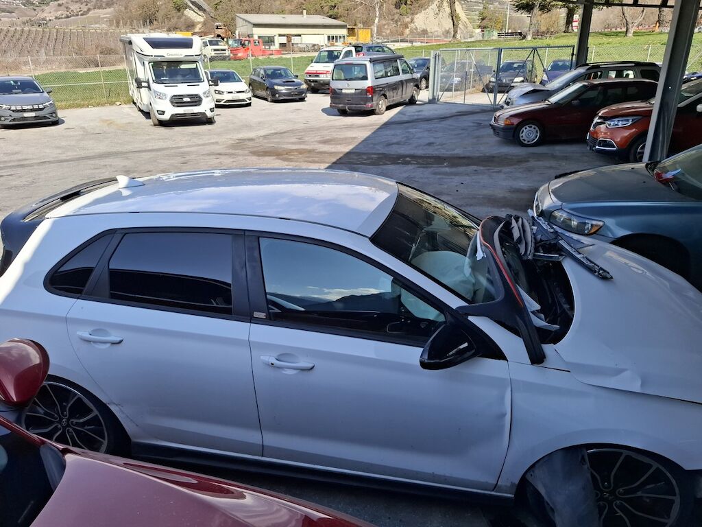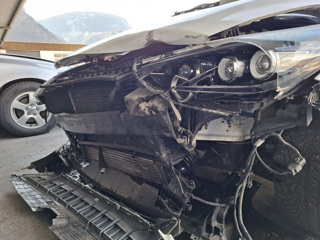 Dommage partie frontale: bloc avant fortement plié déformé embouti enfoncé décentré disloqué endommagé, capot moteur charnières et serrure de capot moteur ailes gauche et droite portes avant gauche et droite renfort de pare chocs longerons gauche et droit longeron supérieur gauche tourelle de suspension gauche pliés déformés emboutis enfoncés décentrés endommagés, enveloppe supports garnitures grilles et spoiler de pare chocs avant phares gauche et droit convoyeurs d'air radiateurs porte serrure ventilateurs de refroidissement pare brise cassés fissurés éclatés arrachés endommagés, airbags conducteur et passager ainsi que genoux déployés, ceintures de sécurité rétractées. Dommage flanc arrière droit: porte et aile pliées déformées endommagées. Motor Getriebe Vorderachse Hinterachse Airbags ausgelöst: 0 Ja ( Abfallcode 16.01.04ak )