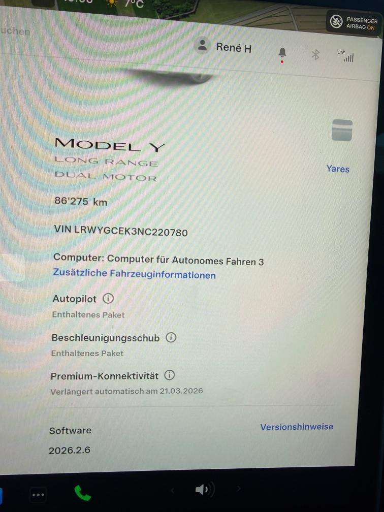 Tesla Model Y Long Range Dual Motor Rückgabe ca. Ende Juli 2026 / ca. 95‘000km Grosser EOW-Check bei 79‘000km, ausgeführe Arbeiten bei Tesla: - Front Lower Lateral links / rechts - Front Patch Lateral links / rechts - Steering Wheel Beschleunigungsboost Anhängerkupplung abnehmbar Sommerräder 20“ (Felgen teilweise beschädigt) Winterräder 19“ Gemini (siehe Fotos)