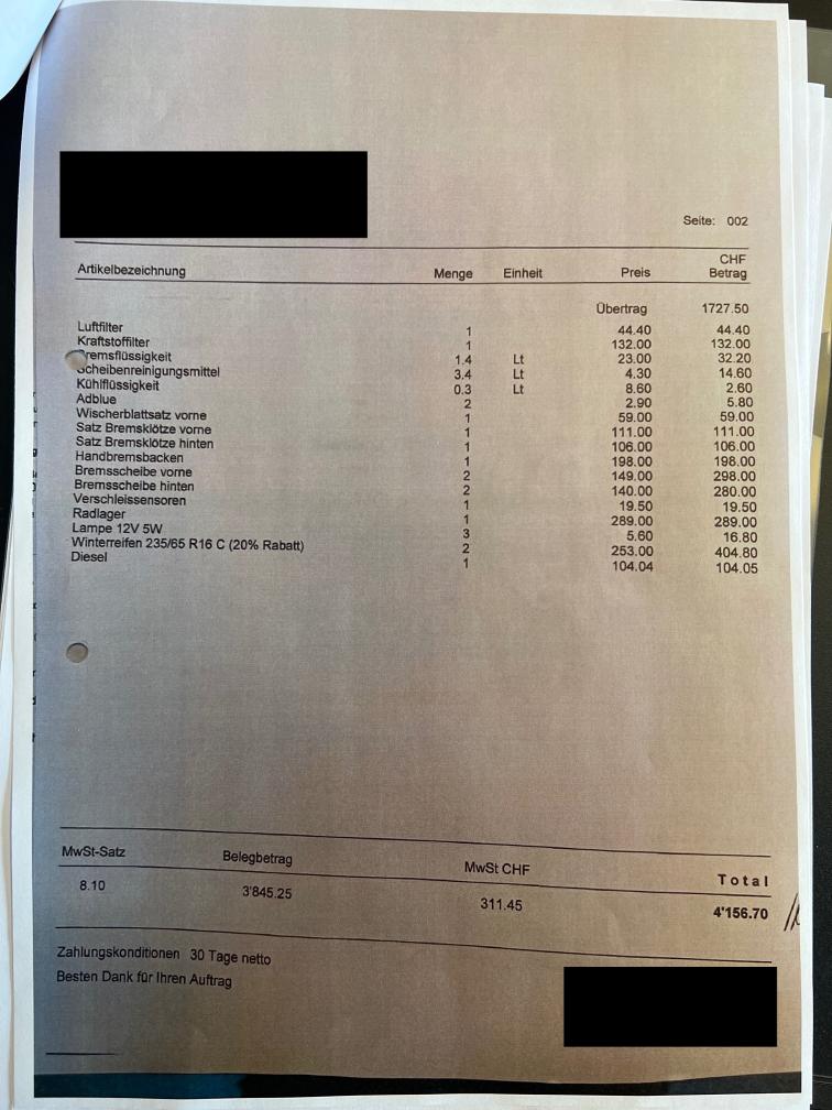 Fahrzeug hat diverse Gebrauchsspuren, auf der Haube sind keine Kratzer sondern Klebereste. Am Fahrzeug wurde Service und diverse Reparaturen gemacht im November 2025 bei 96010km. Siehe Foto von Rechnung Dachkante hinten Oben wurde mal wahrscheinlich angefahren, behindert Türöffnung nicht, nur Optischer Mangel. Siehe Fotos Verkauf ohne Garantie, ohne Inhalt, Wandelungen und Minderungen ausgeschlossen.