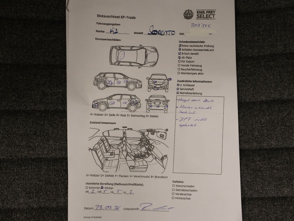 Keine technische Prüfung (Werkstatttest) vorgenommen Diverse Schäden an Karosserie/Lack. Leichter Hagel auf Dach hinten. Motorhaube wurde schlecht lackiert.! 8-fach bereift. Fahrzeug ab Platz, ohne Garantie und Aufbereitung. DPF/FAP Filter nicht kontrolliert Motor Getriebe Vorderachse Hinterachse Airbags ausgelöst: 0 unbekannt ( Abfallcode 16.01.04ak )