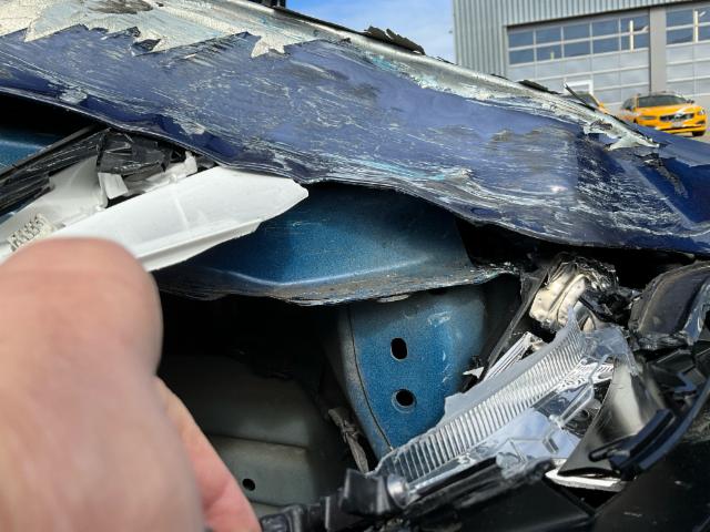 Front eingedrückt. Frontblech/Maskenblech eingedrückt. Radhaus vorne rechts eingedrückt / gestaucht.
