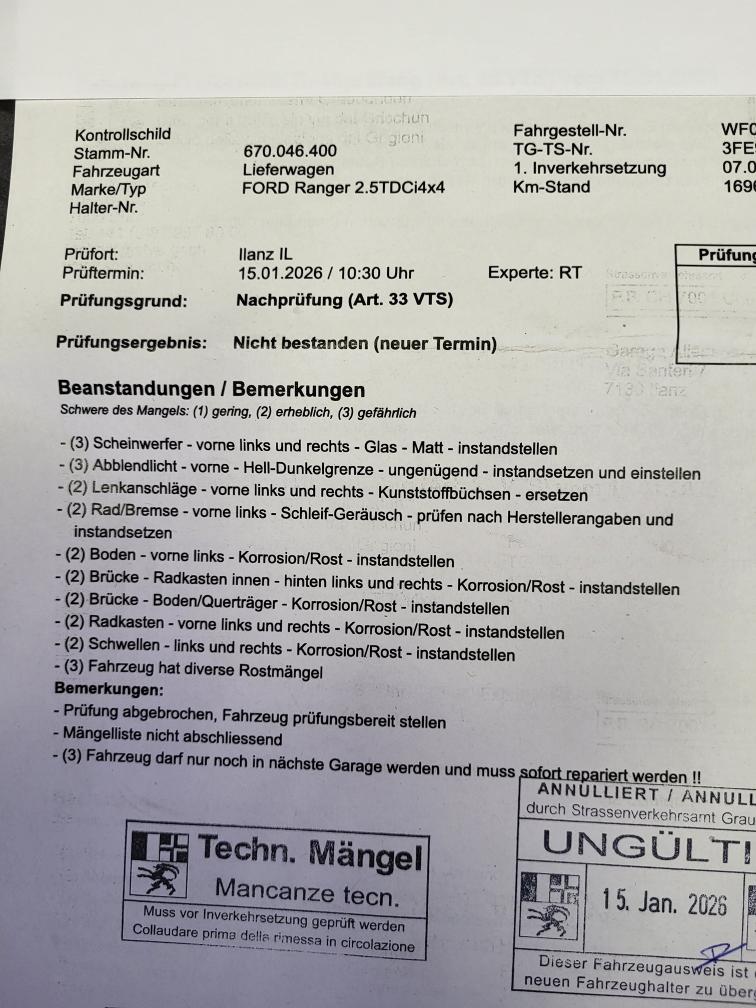 Diverse Rost- & Lackschäden Diverse Technische Mängel (s. Prüfbericht) Chassis ist nicht durchrostet (nur Karrosserie) Ab Platz - Ohne Garantie Die gesetzliche Gewährleistung, insbesondere Wandelung, Minderung oder Ersatzlieferung ist ausgeschlossen.