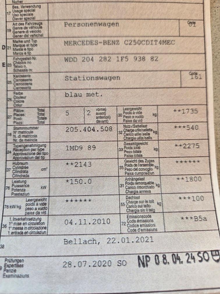 Am Fahrzeug wurde kein Eintauschtest / Zustandsbericht erstellt. Fahrzeug ist dem Alter entsprechend sehr gepflegt. Anhängerkupplung / Anhängelast 1800 kg