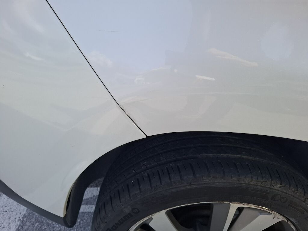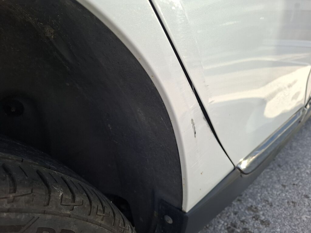 Dommage flanc droit: portes avant et arrière panneau latéral arrière pliés déformés emboutis enfoncés endommagés, rétroviseur poignée de porte avant cassés éclatés endommagés, moulures de fond de porte élargisseur de bas de caisse angle d'enveloppe de pare chocs arrière rayés griffés frottés peinture et structure endommagées. Motor Getriebe Vorderachse Hinterachse Airbags ausgelöst: 0 Nein ( Abfallcode 16.01.04ak )