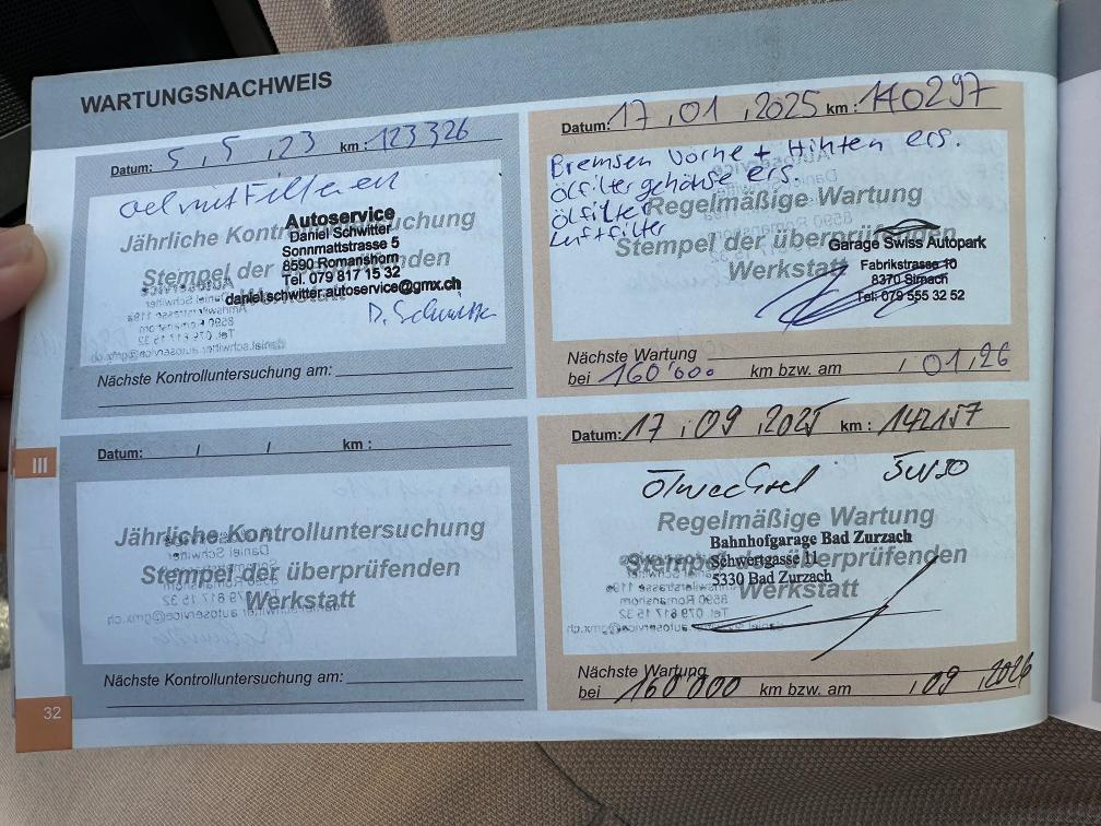 Grosser Service fällig mit Zahnrimen, stossdämpfer vorne nicht gut, handbremse hinten zieht ungleichmässig. Am Fahrzeug wurde kein Werkstatttest gemacht (Für sichtbare oder nicht sichtbare Mängel wird nicht gehaftet). Wir testen und prüfen nicht alle Funktionen des Fahrzeugs. Das Risiko liegt somit vollumfänglich beim Käufer. Nach Erhalt des Zuschlags, gibt es keine Nachverhandlung, auch wenn nicht deklarierte Mängel zum Vorschein kommen. Ab Platz ohne Garantie oder Gewährleistung, Wandelung und Minderung werden weggebunden.